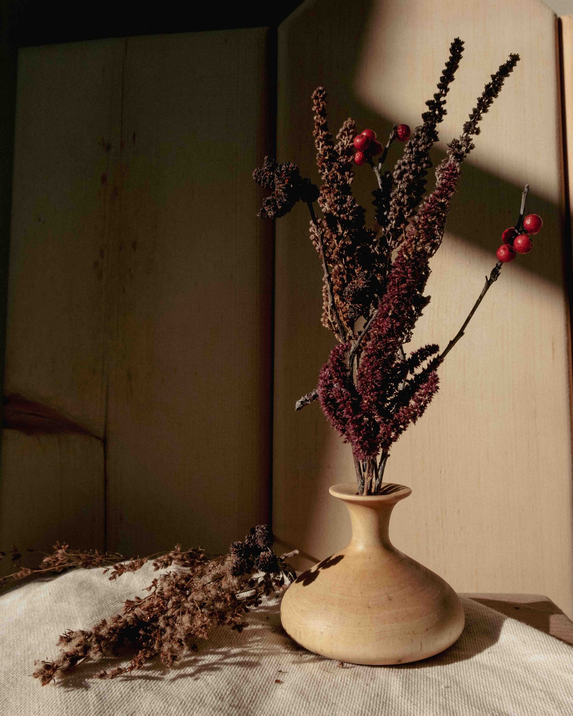 These cute little bud vases are the perfect size to fit into anyones home. Each piece is uniquely shaped based on the branch it was turned from. With the option to be finished off with a bouquet, dried from last summers flower garden.